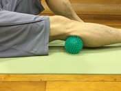 ①ひざの外側にボールを当てます