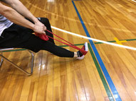 ②ひざを曲げ(繰り返しできる角度でおこなう)、バンドの長さにより負荷調整をしましょう