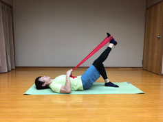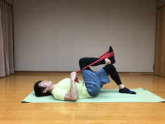 深層筋に負荷をかけるので柔らかいバンドを使用します